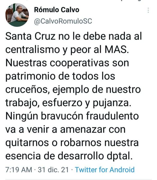 Calvo:»Ningún bravucón fraudulento» va amenazar con quitarnos nuestras cooperativas