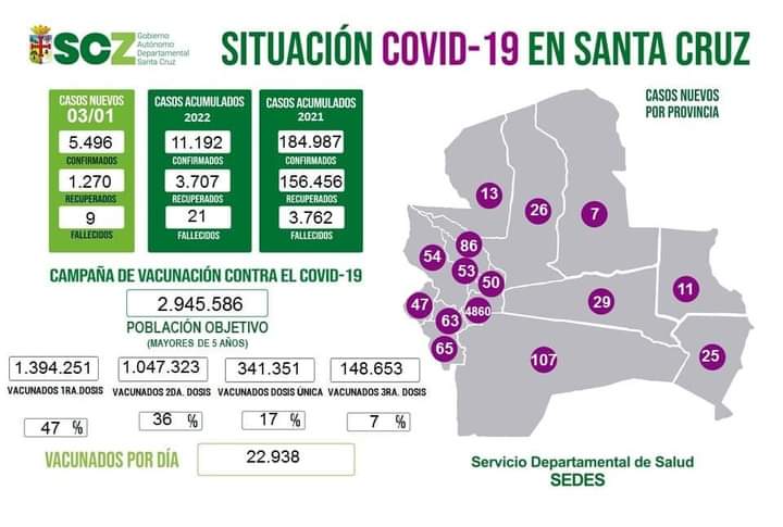 #ANF El departamento de #SantaCruz reporta 5.496 nuevos casos de #Coronavirus y 9 decesos. https://t.co/O8ewZExxKp