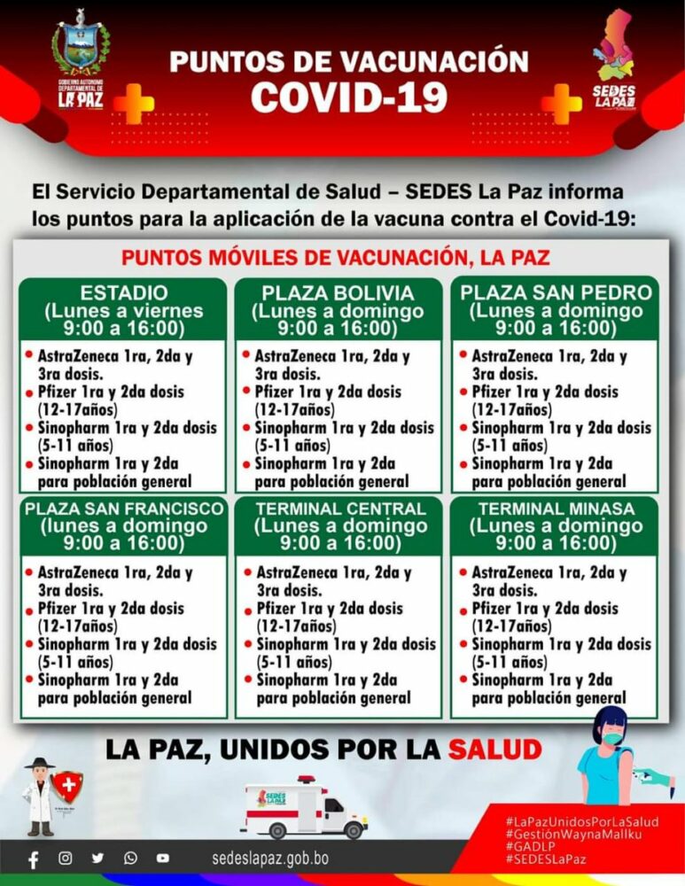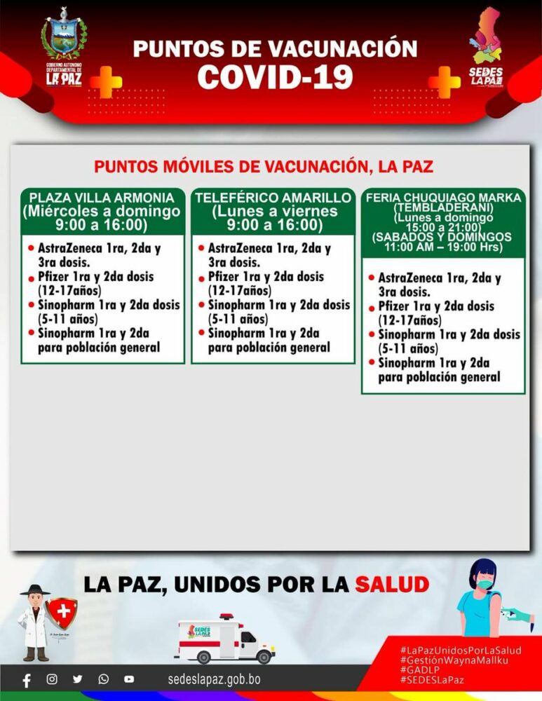 #ANF El Servicio Departamental de Salud (Sedes) emite información sobre los puntos móviles de vacunación anticovid habilitados. pic.twitter.com/5LHLwt2NVi
