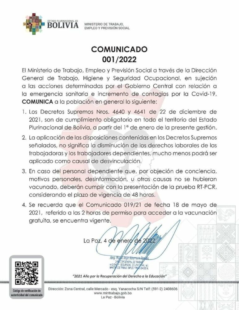 #ANF El Ministerio de Trabajo aclara que los decretos 4640 y 4641, sobre el carnet de vacunación anticovid, no pude ser aplicado como causal de despidos. También recuerda que aún está vigente el comunicado sobre el permiso de dos horas para que el trabajador pueda ir a vacunarse. pic.twitter.com/gknODgzb7V