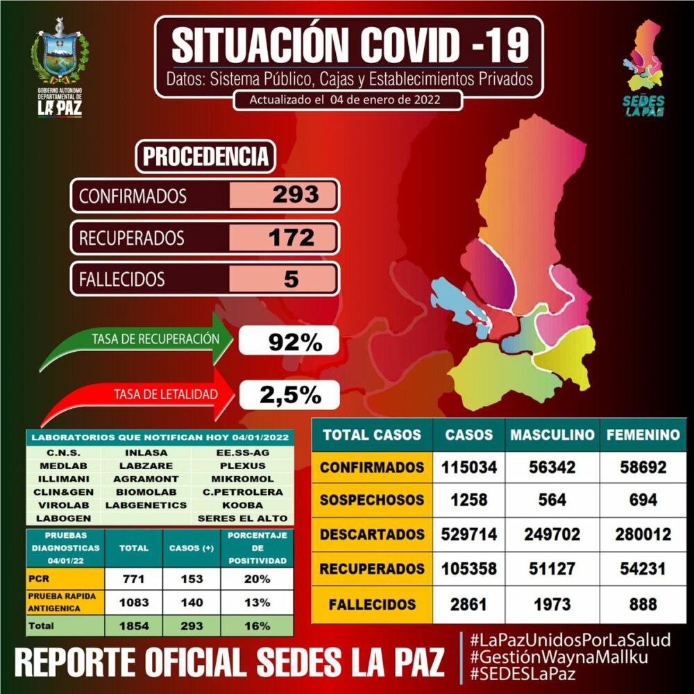 #ANF El Servicio Departamental de Salud de La Paz reporta para este martes 293 nuevos casos de #COVID19 y 5 decesos. https://t.co/jeyniLaWMo