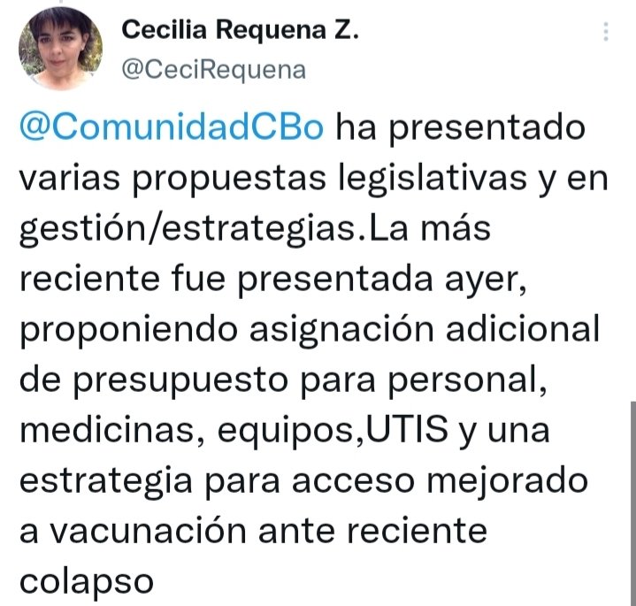#Ultimo La senadora de CC, @CeciRequena, cuestiona la suspensión de la presentación del carnet de vacuna hasta el 26 de enero. «Retroceso en #CarnetVacunación remarcó el desgobierno + desastre sistémico de #SaludPública + carencia de estrategia contra #pandemia», tuiteó. https://t.co/teEHZCA8n0