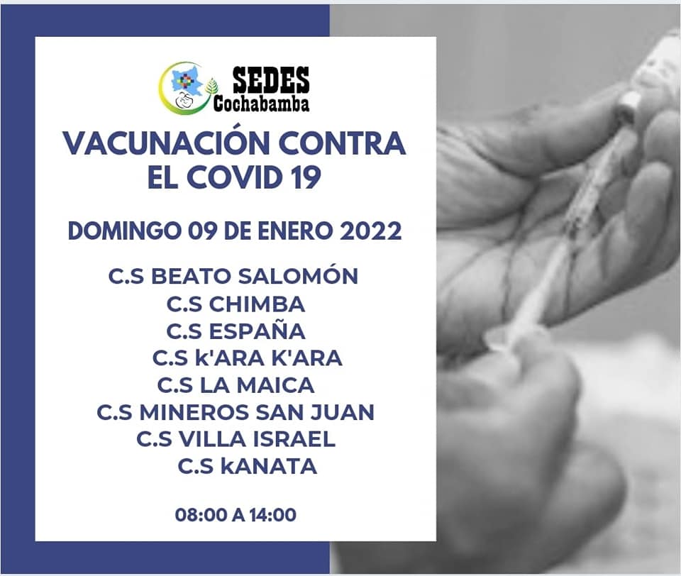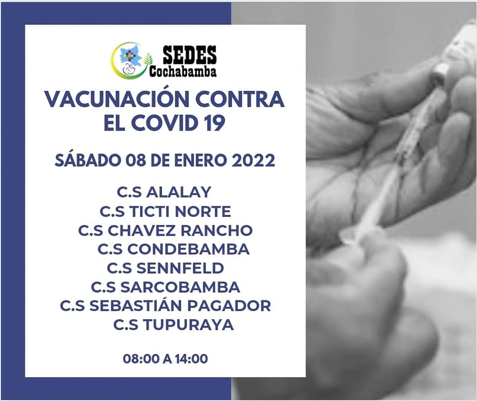 #Cochabamba SEDES lugares, para fin de semana de pruebas de antígeno nasal y vacunación.