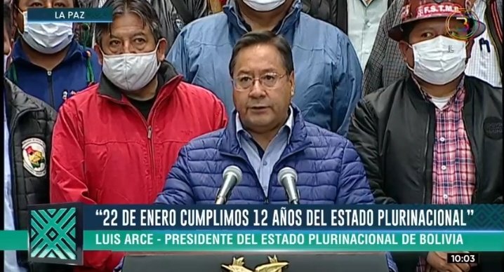 #Ultimo El presidente @LuchoXBolivia anuncia que, debido a la emergencia sanitaria por el #COVID19, se suspenden los actos masivos previstos para la conmemoración del 22 de enero, Día del Estado Plurinacional. https://t.co/hMA1MNCAtZ