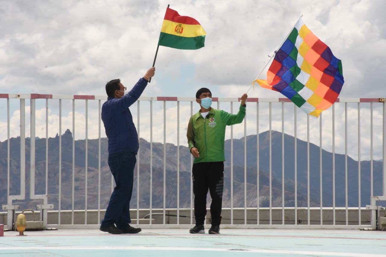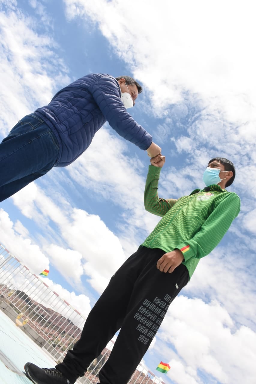 El presidente del Estado, Lucho Arce se reunió con el fondista orureño Héctor Garibay, que representará al país en la XXXVII maratón de #Sevilla.