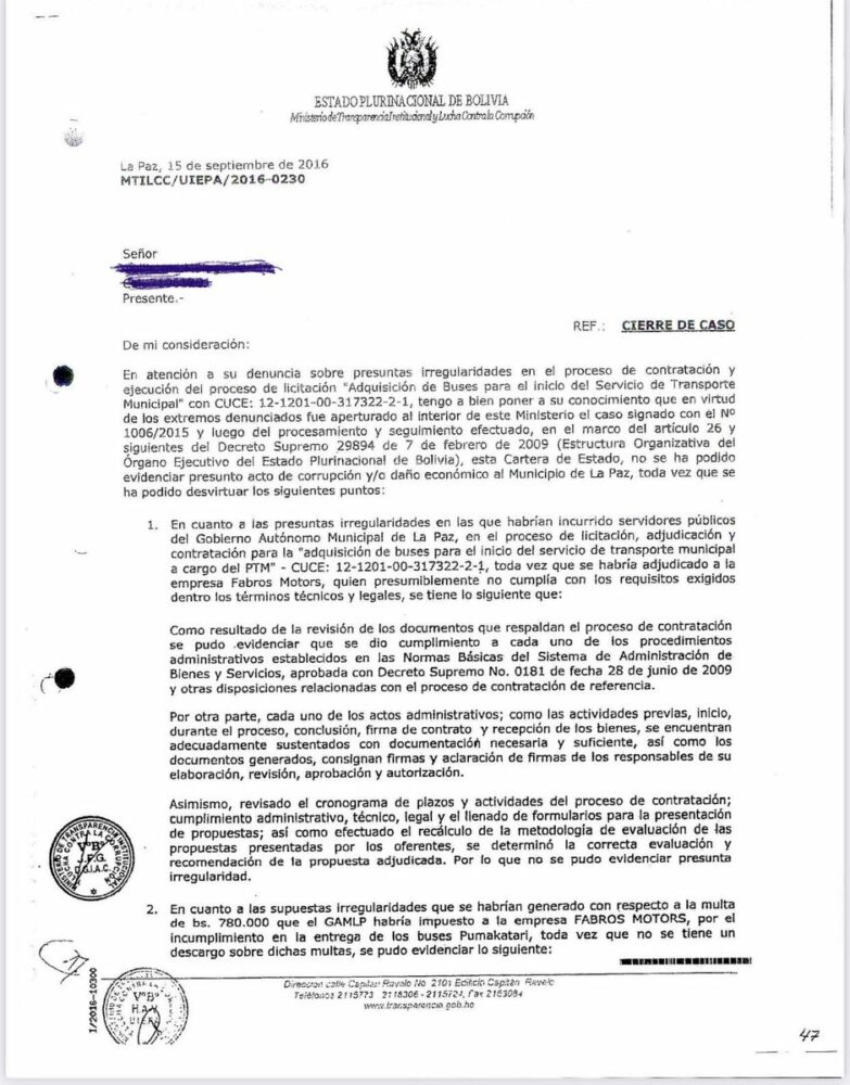 #Ultimo Exalcalde @LuisRevillaH sobre su convocatoria ante la Fiscalía: «Ahí aprovecharemos de presentar pruebas como la carta adjunta del Viceministerio de Transparencia que en 2016 ya estableció que no hubo ninguna irregularidad en la compra de nuestros buses #Pumakatari». https://t.co/8DYLxHVTLn