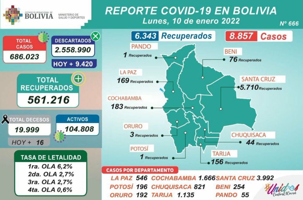 #ANF #Bolivia inicia la semana con 8.857 nuevos contagios. Este lunes 16 personas fallecieron a causa del #COVID19, con los que el total acumulado, desde la llegada de la pandemia, alcanza a casi 20.000 decesos. https://t.co/vdp7B50wWA