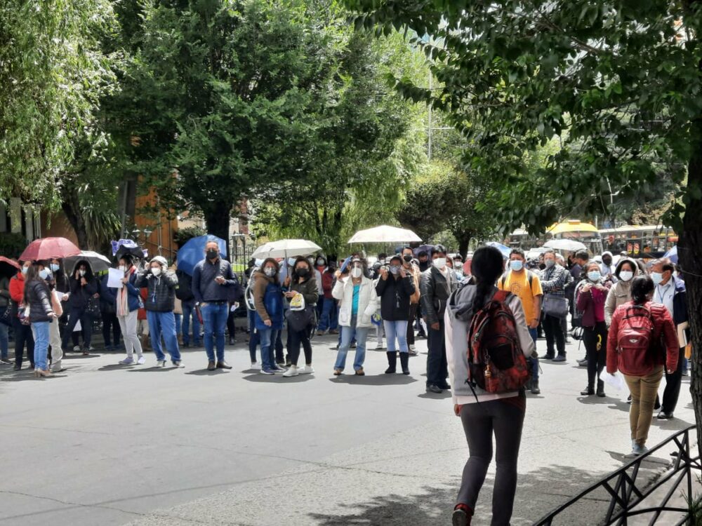 #Ultimo Personas bloquean la avenida Arce de #LaPaz, altura de radio patrulla 110. Exigen que el Sedes envíe más pruebas antígeno nasal, ya que estás se acabaron a las 10 de la mañana. (Fotos: ANF) pic.twitter.com/MyHPKqpVwN