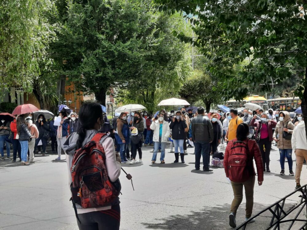 #Ultimo Personas bloquean la avenida Arce de #LaPaz, altura de radio patrulla 110. Exigen que el Sedes envíe más pruebas antígeno nasal, ya que estás se acabaron a las 10 de la mañana. (Fotos: ANF) https://t.co/MyHPKqpVwN