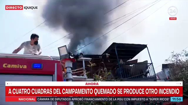 #Ultimo Imágenes del nuevo incendio que se registró hoy en inmuebles localizados a cuadras del campamento que se incendió ayer en #Iquique, #Chile.
