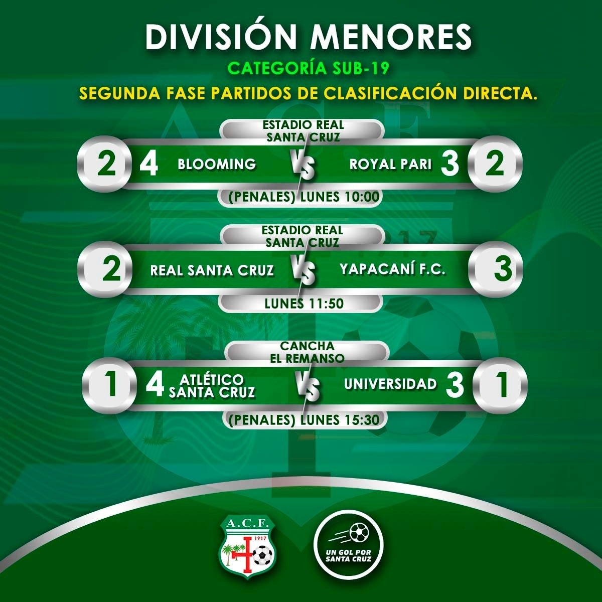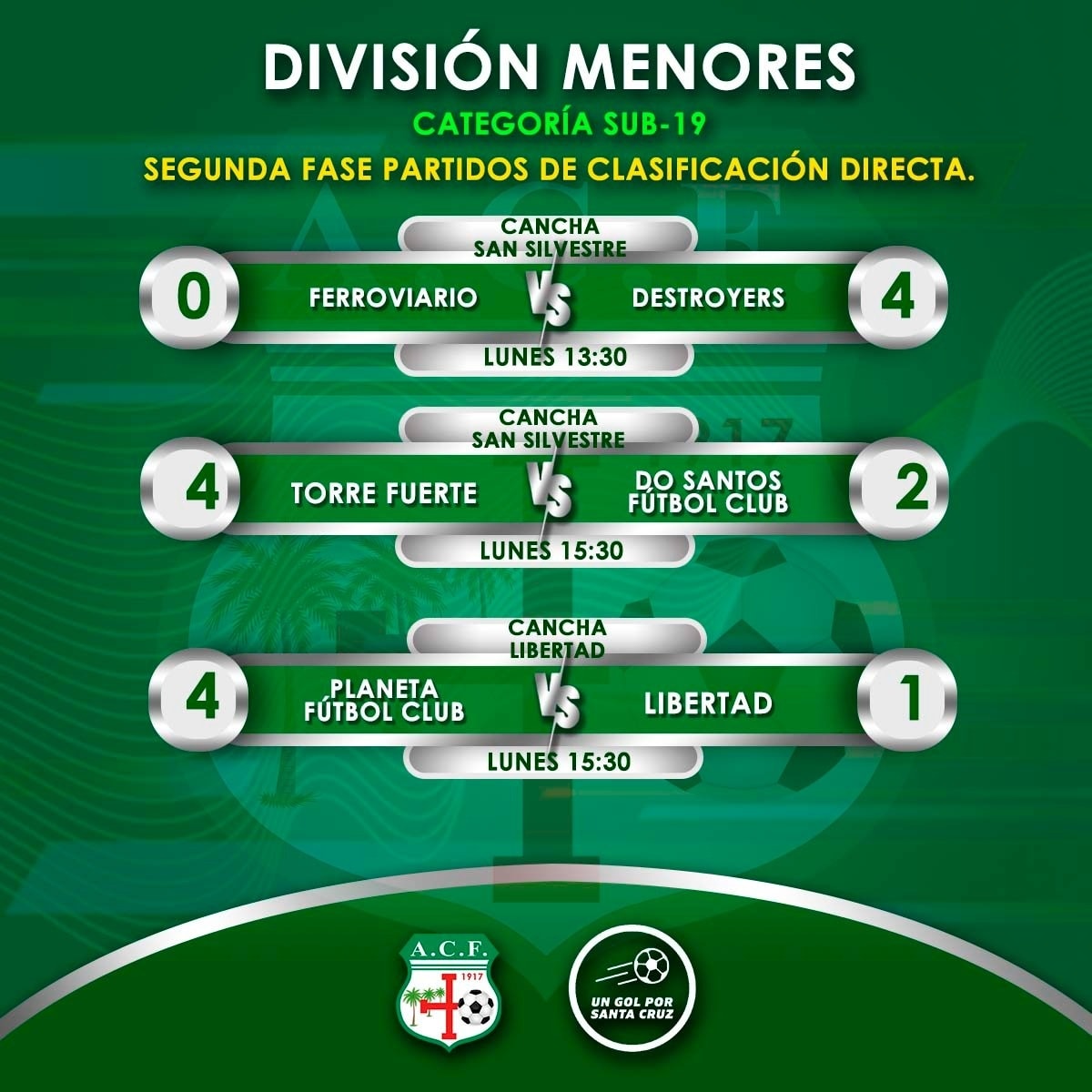 RESULTADOS DE LA DIVISIÓN MENORES CATEGORÍA SUB-19 EN LA SEGUNDA FASE DE ELIMINACIÓN DIRECTA