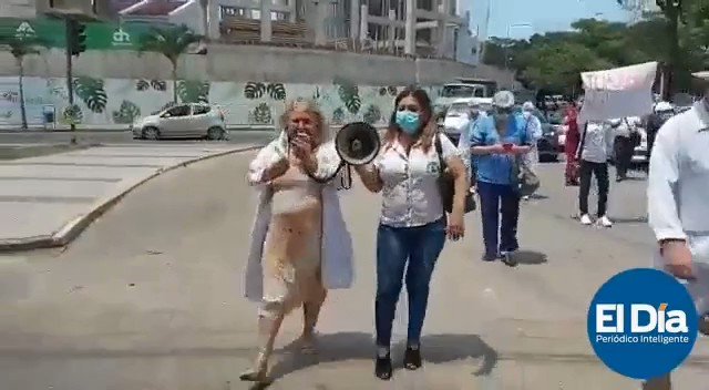 #Ultimo Trabajadores de salud del Hospital Oncológico de #SantaCruz marchan y exigen al Ministerio de Salud la contratación de personal para garantizar la atención, ya que gran parte de los salubristas está con baja por #COVID19. (Vía @Diario_ElDia) pic.twitter.com/6NPQ6DDX59