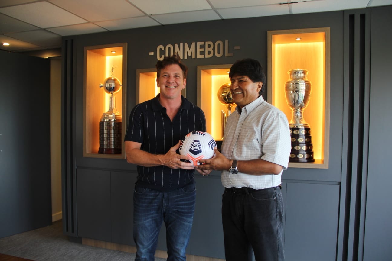 El hermano Evo Morales le entregó por adelantado el regalo de cumpleaños al presidente de la CONMEBOL, Alejandro Doming…