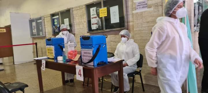 El punto de vacunación #anticovid instalado en el monoblock central de la U…
