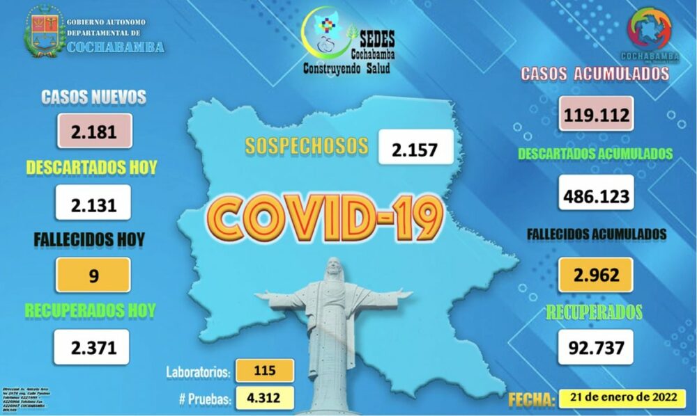 #ANF En #Cochabamba, este viernes 2.181 personas se contagiaron con #COVID19 y nueve fallecieron. https://t.co/Xq0tYXgLTm