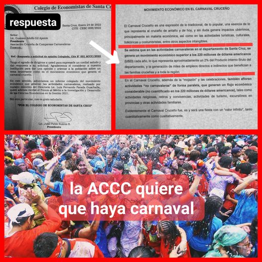Ante la solicitud de una explicación por parte de los comparseros (ACCC) el Colegio de Economistas escribió «sin duda genera impactos ubérrimos»