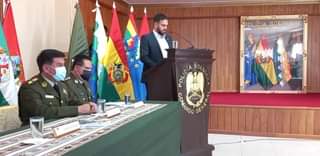 El Ministro de Gobierno Eduardo del Castillo y el Comandante General de la Policía Jhonny Aguilera presentas caso relevantes atendidos por la FELCC