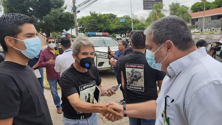 #ANF El @ComiteProSC expresó su apoyo a los periodistas que hoy protestaron en #SantaCruz en demanda de justicia a tres meses de suscitarse los hechos en Las Londras, #Guarayos, donde fueron secuestrados y agredidos por avasalladores. https://t.co/AksOkJGJld