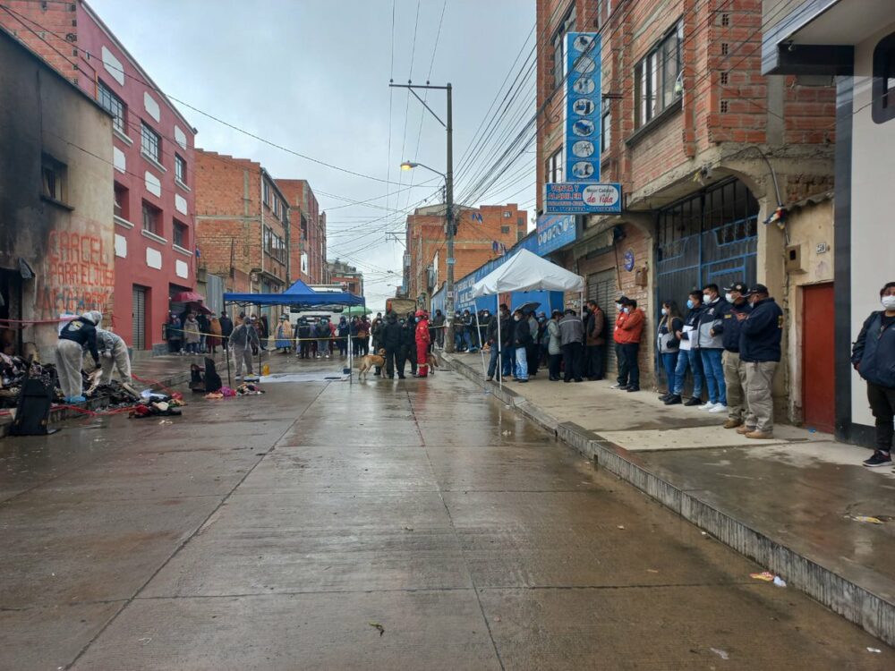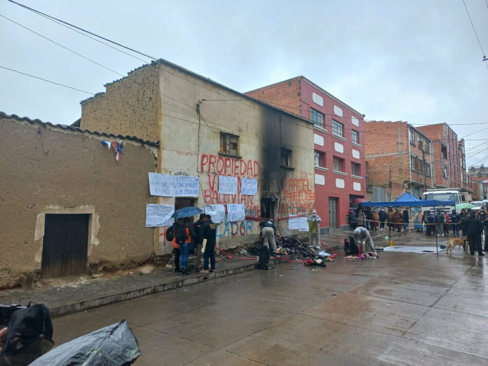 #Ultimo Este es el panorama en la zona Ballivián de #ElAlto, especificamente en el inmueble donde habitaba el violador serial y feminicida, Richard Choque. Investigadores recolectan evidencias mientras un grupo de personas observa el trabajo pericial. (Fotos: ANF) pic.twitter.com/mbZTlIUs8I