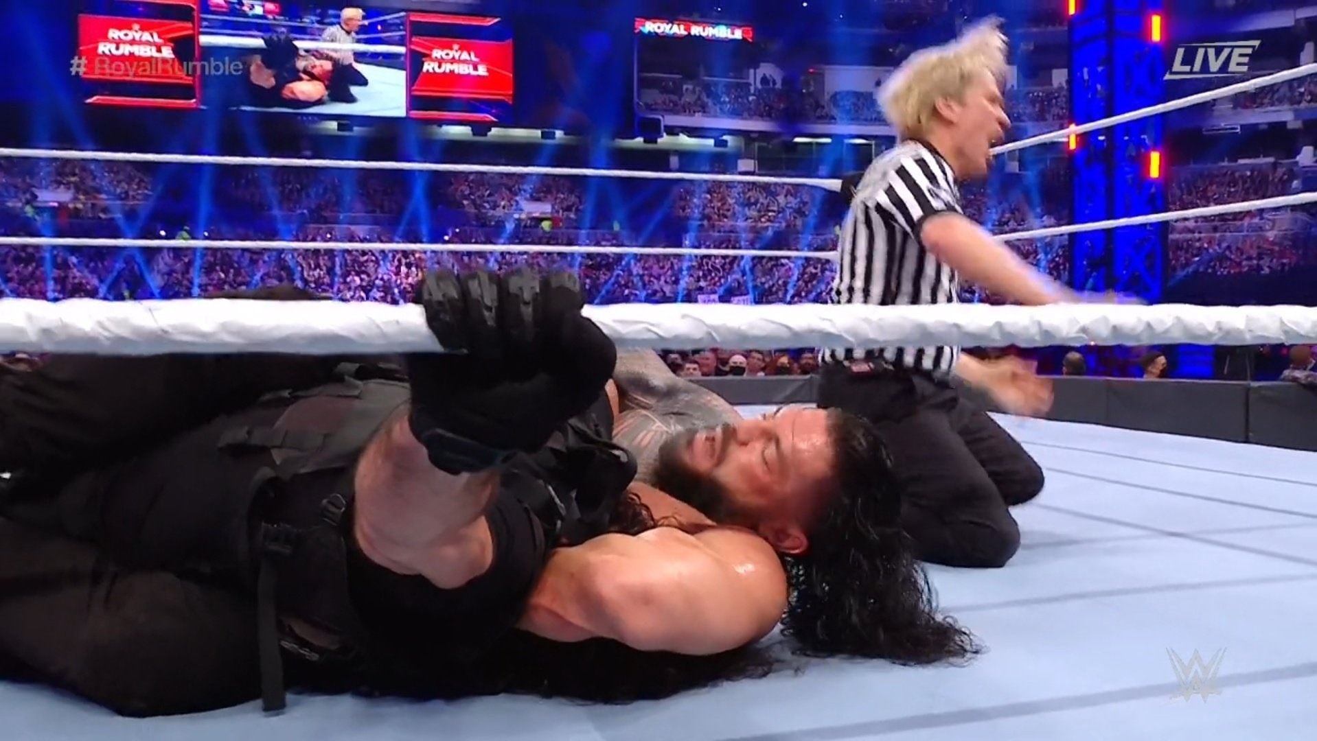 Roman Reigns retiene el Campeonato Universal tras haber perdido por DQ. #RoyalRumble