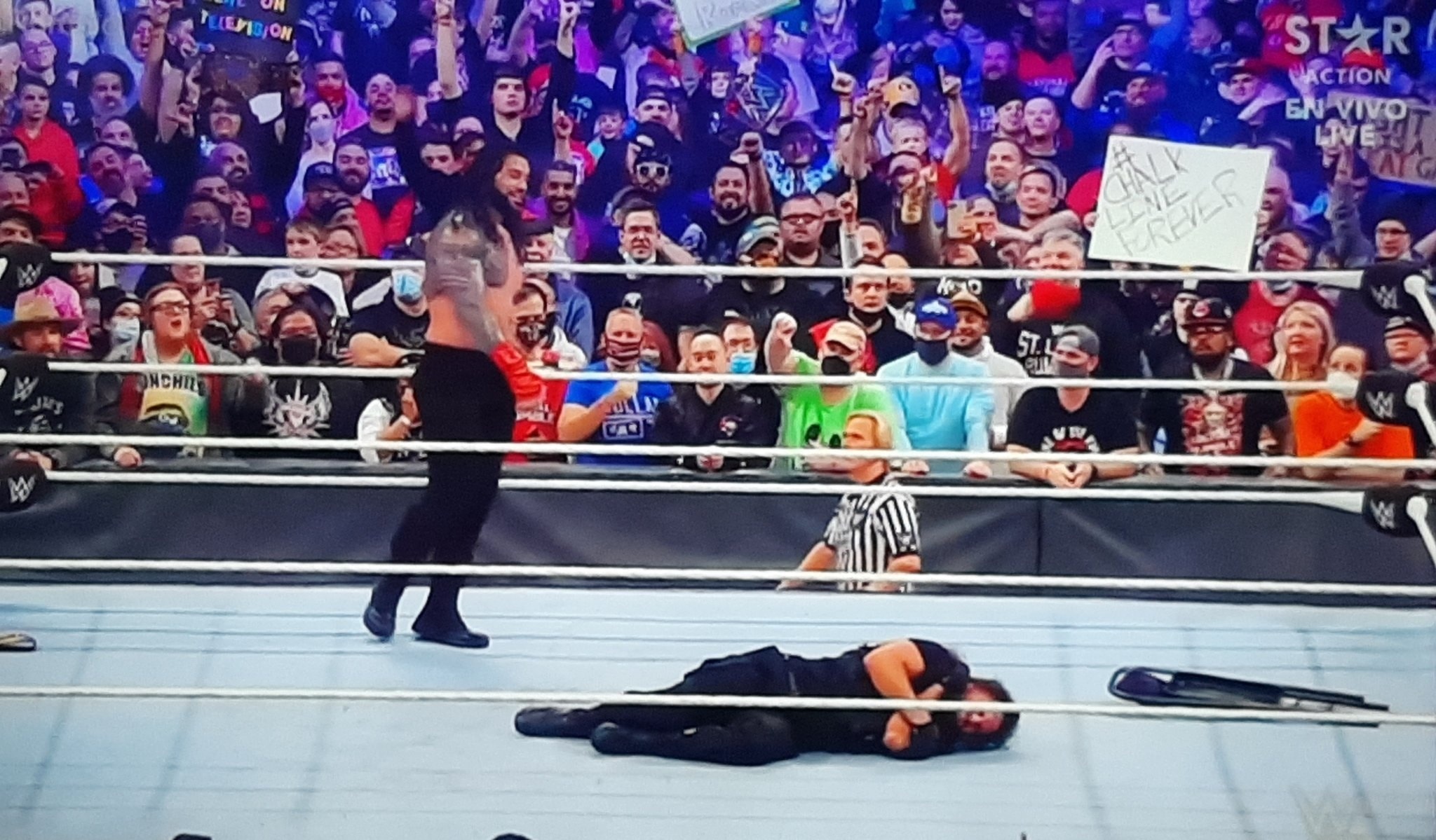 Roman Reigns retiene el Campeonato Universal tras haber perdido por DQ. #RoyalRumble Muy…