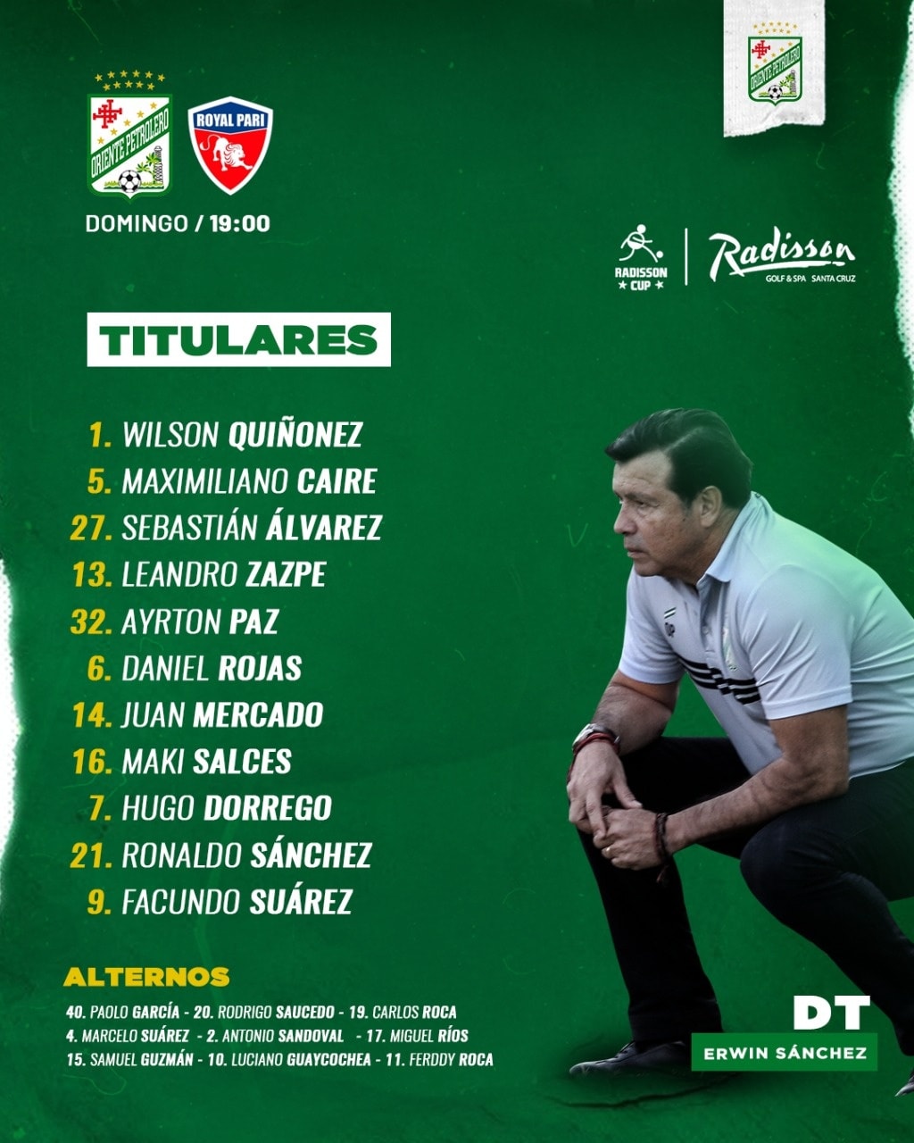 Así formará Oriente y Royal Pari para la final del torneo de verano.