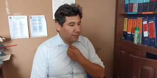 Lic. Jhenry Lazo Coca responsable de educación del municipio, informa sobre el proceso de adquisición de insumos de bioseguridad para unidades educativas.