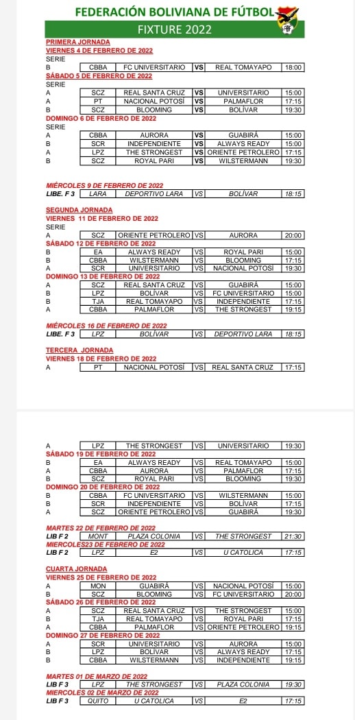 Te dejamos el horario de las 4 primeras fechas del torneo apertura.