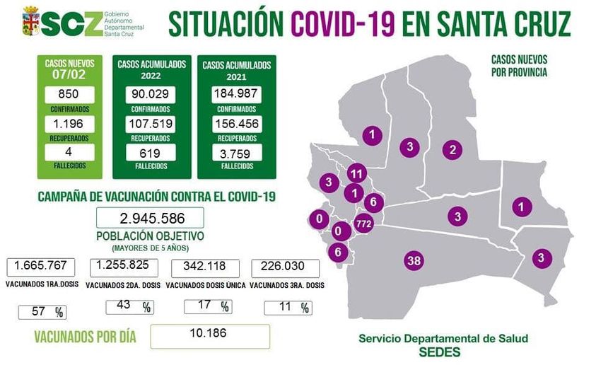 #SCZ reporta hoy 850 nuevos contagios de #covid-19 y 4 fallecidos
