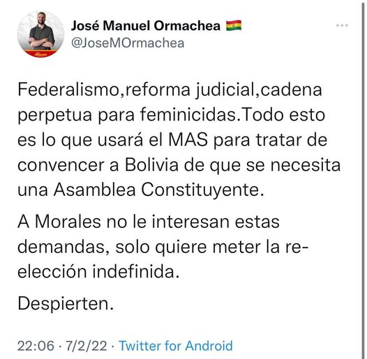 Así lo hizo saber en sus redes el Diputado Nacional, Jose Manuel Ormachea.
