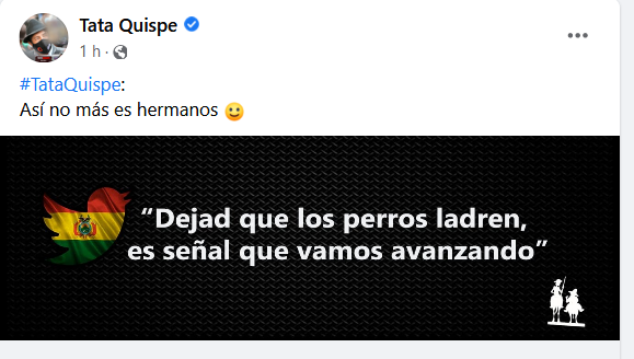 Tata Quispe aparece y dice: «Dejad que los perros ladren, es señal de que vamos avanzando»…