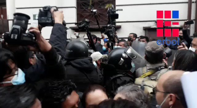 Continúan las fricciones entre manifestantes a favor y en contra de Jeanine Añez, frente al tribunal que lleva adelante el juicio del caso «golpe II». https://t.co/ApqkMg0nXz