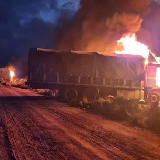 #Contrabando: Aproximadamente 50 contrabandistas usaron armas de fuego y dinamitas para intentar recuperar la mercadería ilegal que fue decomisada por la Aduana Nacional en la localidad de Chuquichambi, a 95 kilómetros de la ciudad de #Oruro. Los productos que pretendían ingresar al país ilegalmente estaban siendo transportados en cinco camiones y dos vagonetas, y ante el ataque de los contrabandistas, las autoridades quemaron tres camiones.
