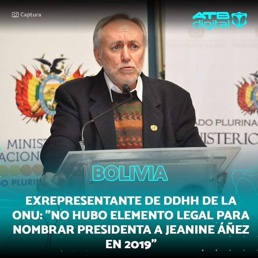 El exrepresentante del Alto Comisionado de la Organización de Naciones Unidas (#ONU) para los #DerechosHumanos en #Bolivia, #DenisRacicot, afirmó que en 2019 no hubo elemento legal para nombrar presidenta a #JeanineÁñez y dijo que sí hubo un #golpedeEstado.