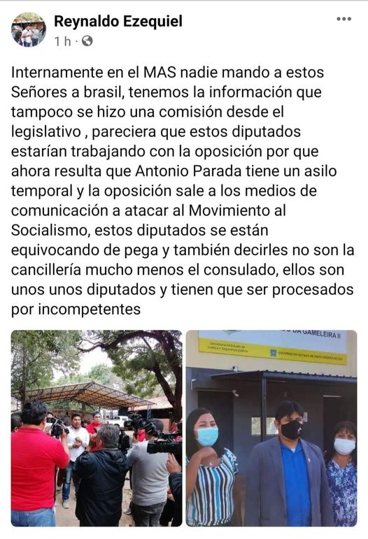 Reynaldo Ezequiel (MAS) dice que comisión de diputados masistas que viajó a Brasil para supuestamente agilizar la extradición de Antonio Parada «tienen que ser procesados por incompetentes».