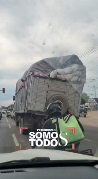 Camión con sobrecarga circulaba peligrosamente, por la carretera a Cotoca.