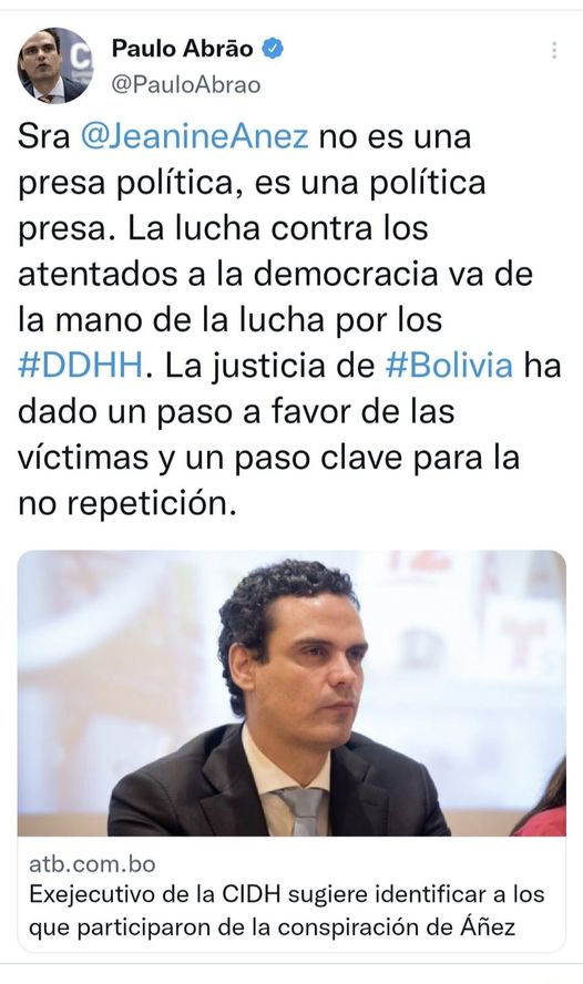 Añez es una política presa. #JusticiaCategorías NoticiasEtiquetas , Facebook, Kawsachun Coca 15/02/2022 Añez es una política presa. #Justicia => Recibir por Whatsapp las noticias destacadas Fuente: Kawsachun Coca