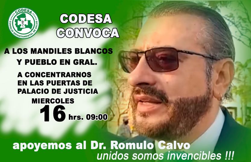 CODESA Convoca a una concentración en las afueras del Palacio de Justicia, esto en apoyo a Rómulo Calvo, que mañana deberá estar ante juez, porque hoy se quedo sin abogado en su audiencia.