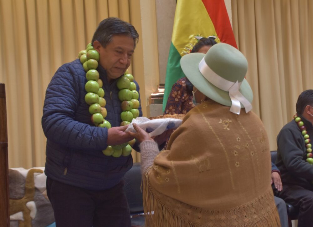 El vicepresidente David Choquehuanca recibió la tarde de este miércoles la visita de las autoridades originarias de la Capital Santiago de Huari, de la provincia Sebastián Pagador, del Departamento de Oruro, quienes expusieron sus tejidos y gastronomía característica.