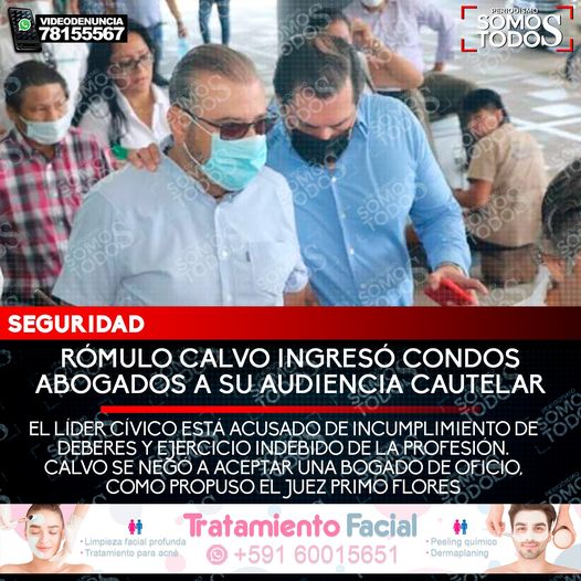 El juez determinó que Calvo se presente con un abogado defensor de oficio, nombrado por el Servicio Plurinacional de Defensa Pública, como consta en el oficio 219/2022 del 15 de febrero. No obstante, Calvo se negó a ser defendido por un abogado de oficio.
