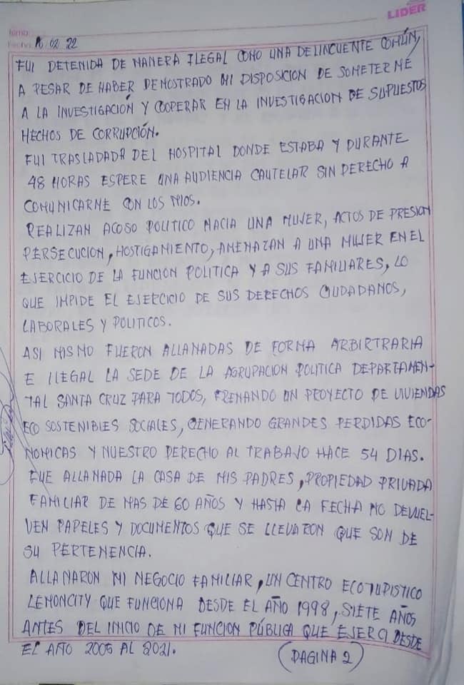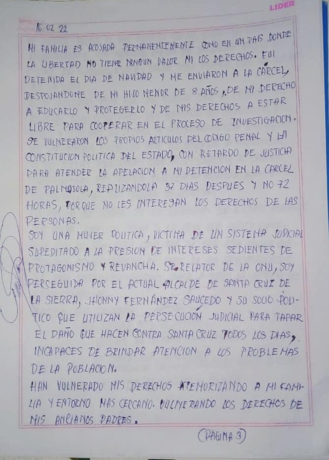 #ANF La exalcaldesa interina de #SantaCruz, Angélica Sosa, envió una carta al Relator Especial de la ONU, Diego García-Sayán, en la que denuncia vulneración de derechos y es afirma que es una presa política. https://t.co/ODGSqrEZ0v
