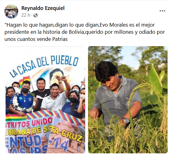 Reynaldo Ezequiel (MAS) dice que Evo es «querido por millones y odiado por unos cuantos vende patrias»