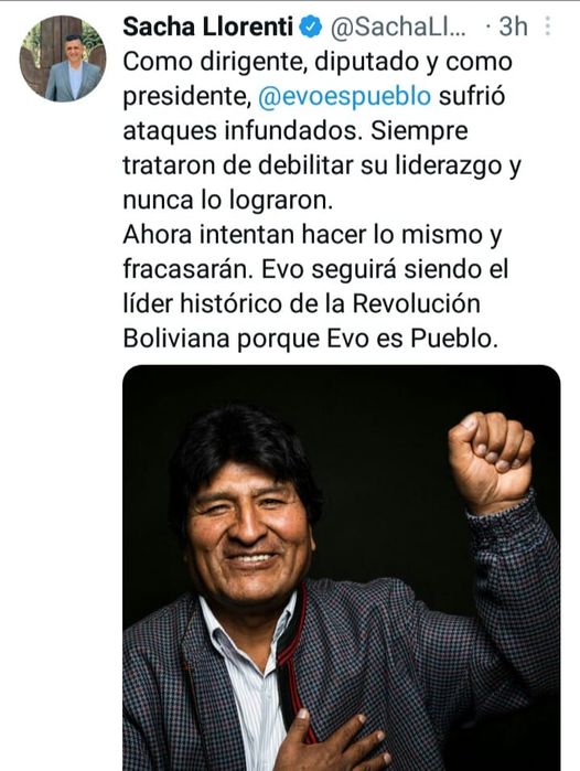 Sacha Llorenti defiende a Evo, dice que este siempre «sufrió ataques infundados»