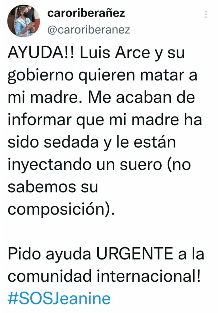 #Último #ANF Carolina Ribera acusa al presidente @LuchoXBolivia y al Gobierno de querer «matar» a su madre, @JeanineAnez, porque habría sido sedada en el penal de Miraflores.