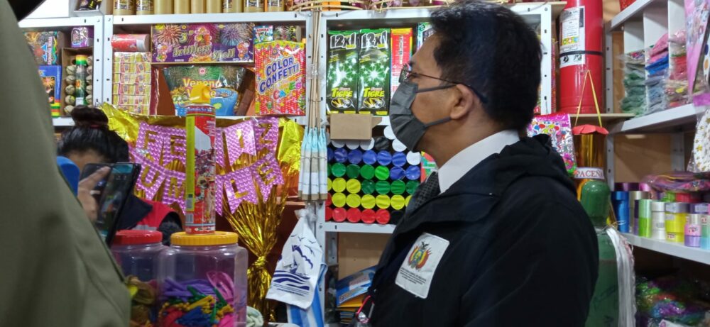 La Fuerza Especial de Lucha Contra el Crimen (FELCC), el Instituto Boliviano de Metrología Oficina Central (IBMETRO) y el Viceministerio de Defensa de los Derechos del Usuario y Consumidor realizan este jueves un operativo de verificación de productos de Carnaval en la calle Illampu y otras de la ciudad de La Paz.