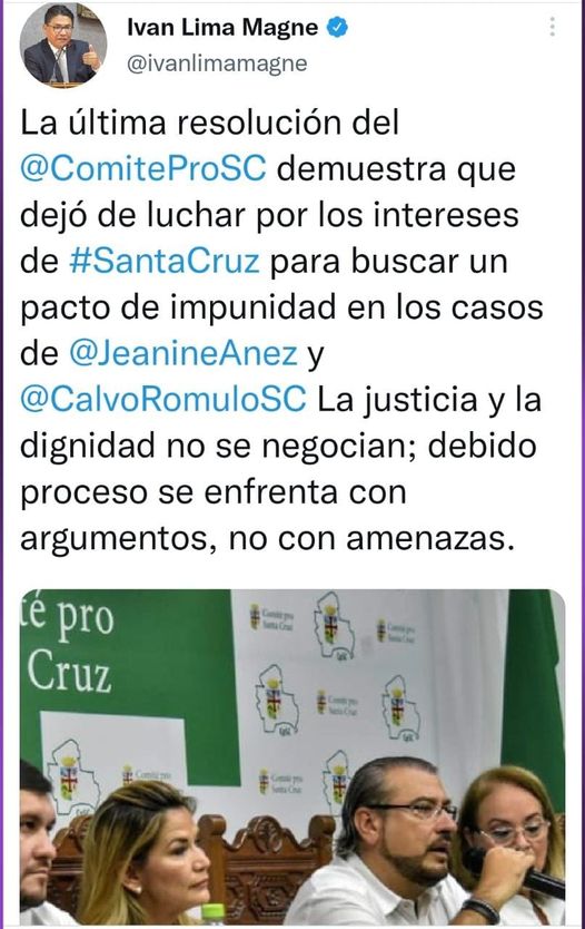 Ministerio de Justicia, Ivan Lima se pronuncia tras la resolución asumida en el Comité Pro Santa Cruz.