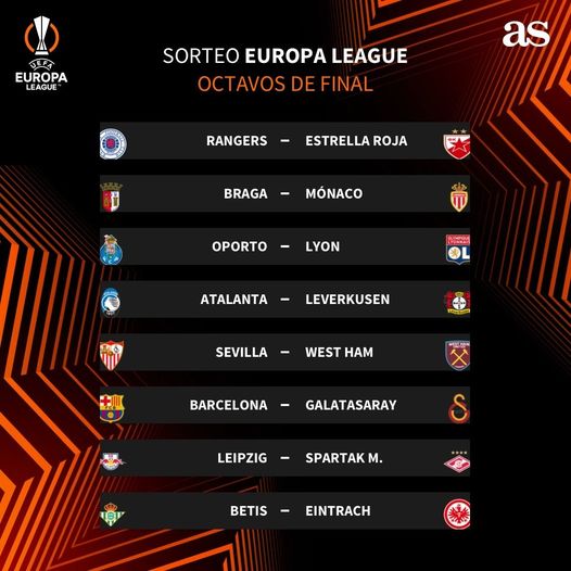 Así han quedado los cruces de los 8vos de final de la UEFA Europa League.Categorías DeportesEtiquetas , Facebook, Play Deportes 25/02/2022 ✅ Así han quedado los cruces de los 8vos de final de la UEFA Europa League. Fuente: Play Deportes