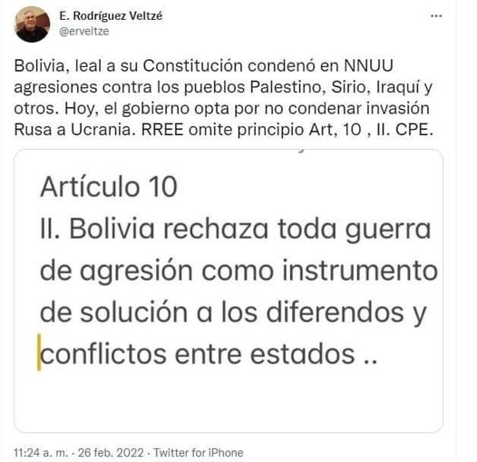 #Ucrania : Bolivia @luchoxbolivia RREE omite la Constitución Art.10