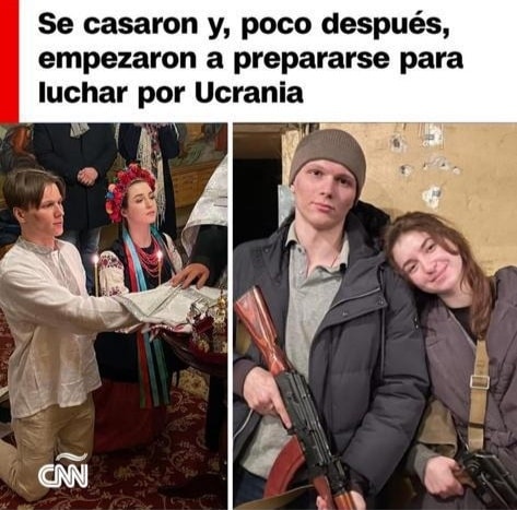 #Ucrania : Se casaron y pocas horas después se prepararon para luchar CNNCategorías NoticiasEtiquetas , Agustín Zambrana en El Bunker, Facebook 26/02/2022 #Ucrania : Se casaron y pocas horas después se prepararon para luchar CNN 🇺🇦🇧🇴 Fuente: Agustín Zambrana en El Bunker