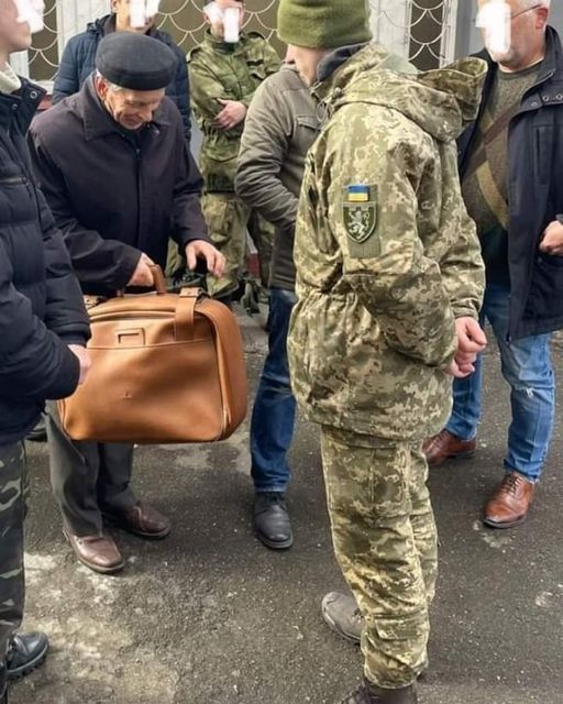 #Ucrania : la edad no importa cuando la libertad y la patria lo demandan.🇺🇦 Un hombre de 80 años apareció para unirse al ejercicio ucraniano, llevando consigo una maleta con dos camisetas un par de pantalones, un cepillo de dientes y unos sandwiches para el almuerzo. Lo hace por sus nietos dijo. #FuerzaUcrania🕊️🇺🇦